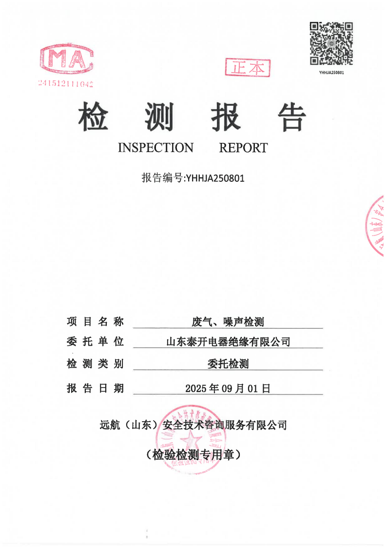山东泰开电器绝缘有限公司2025年三季度检测报告